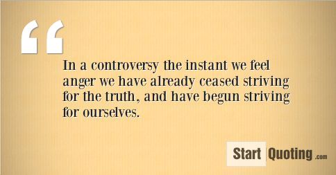 In a controversy the instant we feel anger we have already ceased striving for the truth, and have begun striving for ourselves.