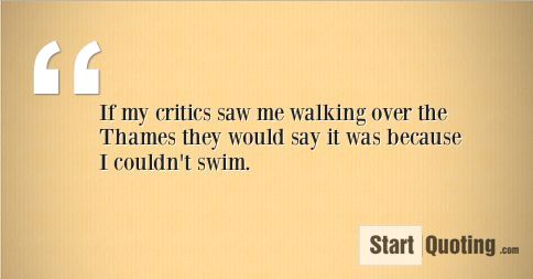 If my critics saw me walking over the Thames they would say it was because I couldn´t swim.
