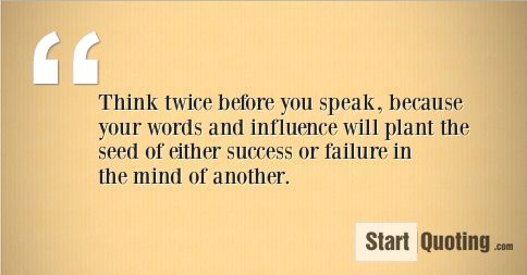 Think twice before you speak, because your words and influence will plant the seed of either success or failure in the mind of another.
