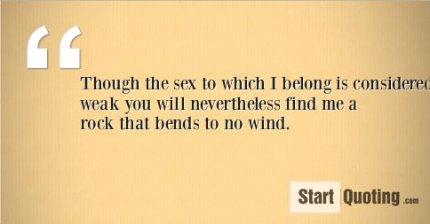 Though the sex to which I belong is considered weak you will nevertheless find me a rock that bends to no wind.