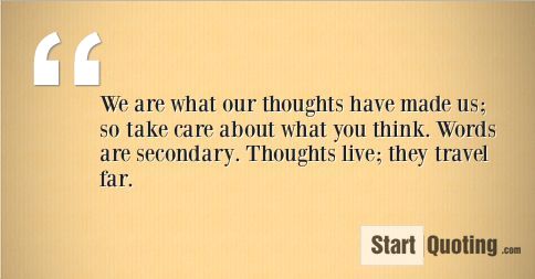 We are what our thoughts have made us; so take care about what you think. Words are secondary. Thoughts live; they travel far.