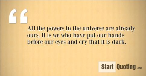 All the powers in the universe are already ours. It is we who have put our hands before our eyes and cry that it is dark.