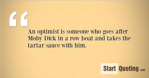 An optimist is someone who goes after Moby Dick in a row boat and takes the tartar sauce with him.
