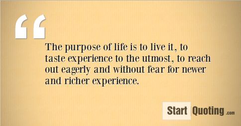 The purpose of life is to live it, to taste experience to the utmost, to reach out eagerly and without fear for newer and richer experience.