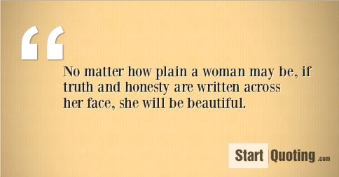 No matter how plain a woman may be, if truth and honesty are written across her face, she will be beautiful.