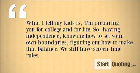What I tell my kids is, ´I´m preparing you for college and for life. So, having independence, knowing how to set your own boundaries, figuring out how to make that balance. We still have screen-time rules.