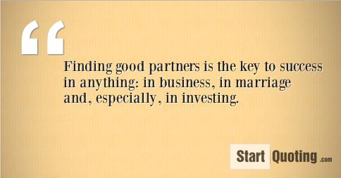 Finding good partners is the key to success in anything: in business, in marriage and, especially, in investing.