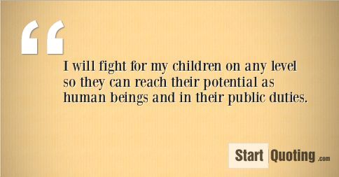 I will fight for my children on any level so they can reach their potential as human beings and in their public duties.